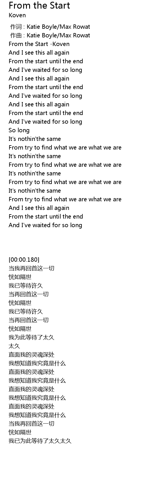 | [00:00.180] | From the Start Koven |
