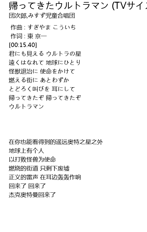 | [00:15.45] | 君にも見える ウルトラの星 |