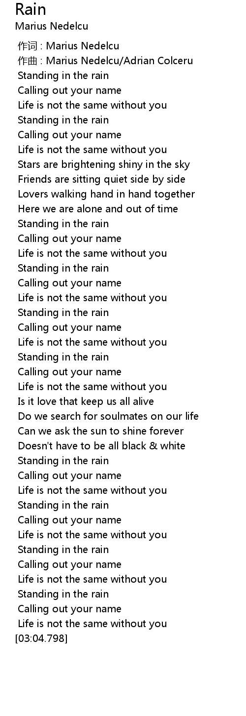 | [00:15.693] | Standing in the rain |
