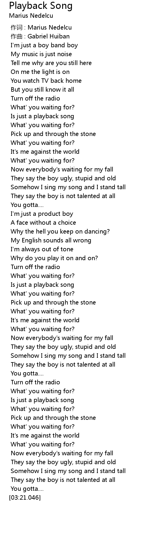 | [00:00.000] | 作词 : Marius Nedelcu |