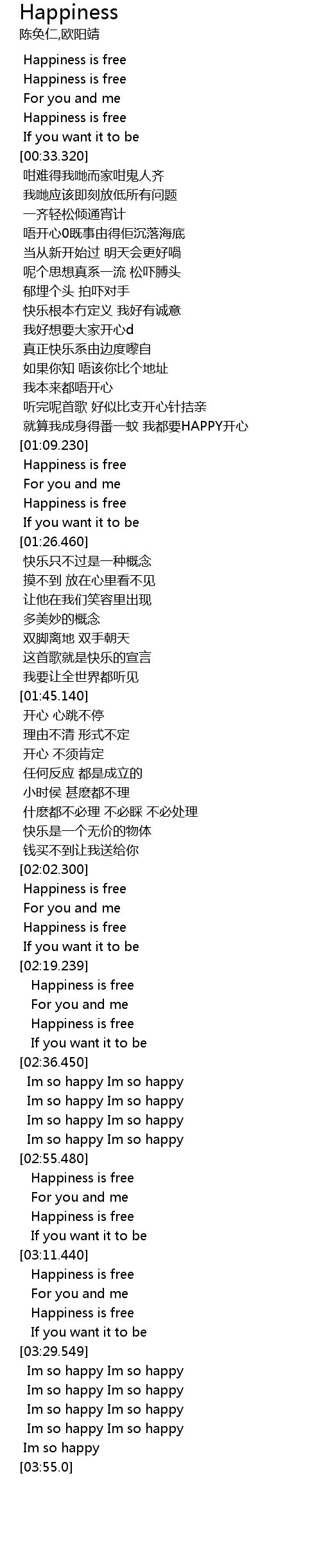 | [01:58.479] | kuài lè shì yí gè wú jià de wù tǐ |