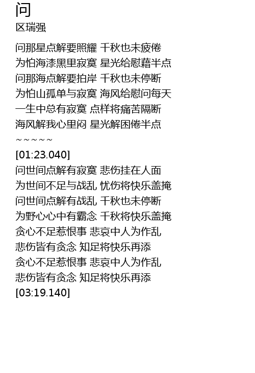 | [00:05.320] | 问那星点解要照耀 千秋也未疲倦 |