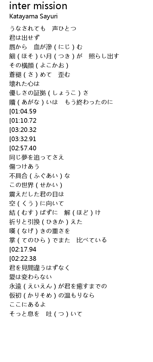 | [02:31.10] | 永遠(えいえん)が君を癒すまでの |