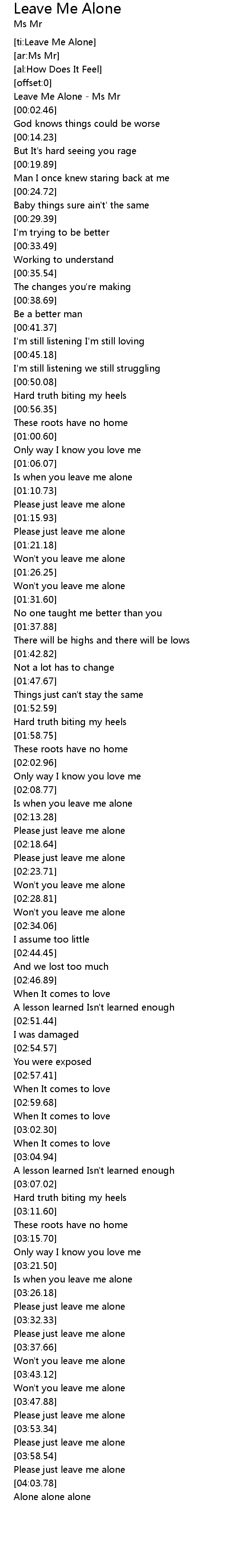 [ti:Leave Me Alone] |