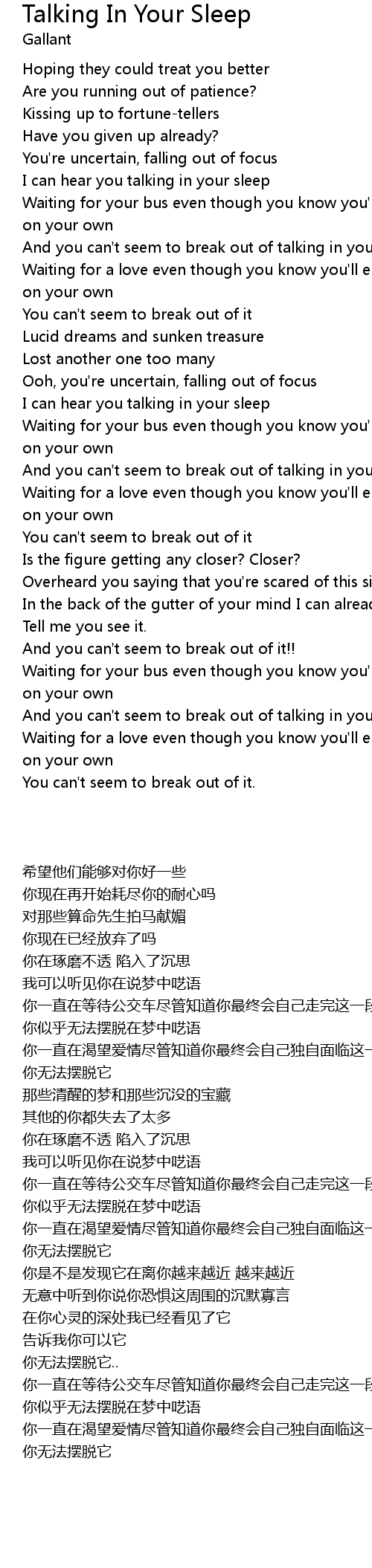 And you can't seem to break out of talking in your sleep |