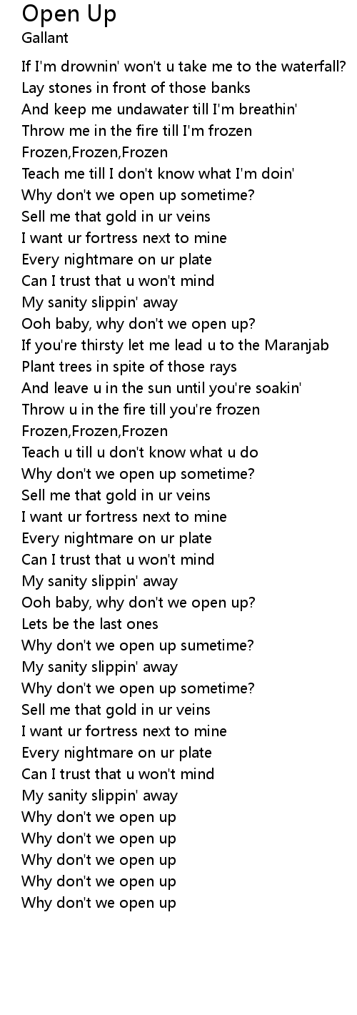 | [01:34.56] | Ooh baby, why don't we open up? |