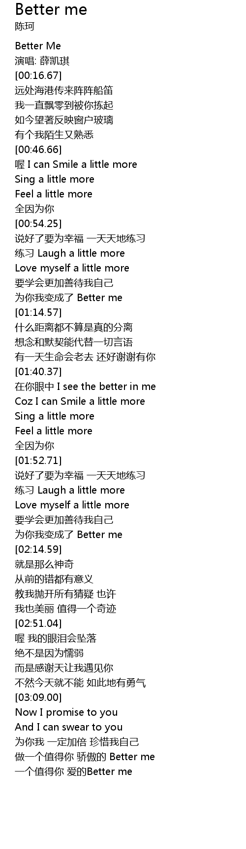 | [03:16.58] | 做一个值得你 骄傲的 Better me |