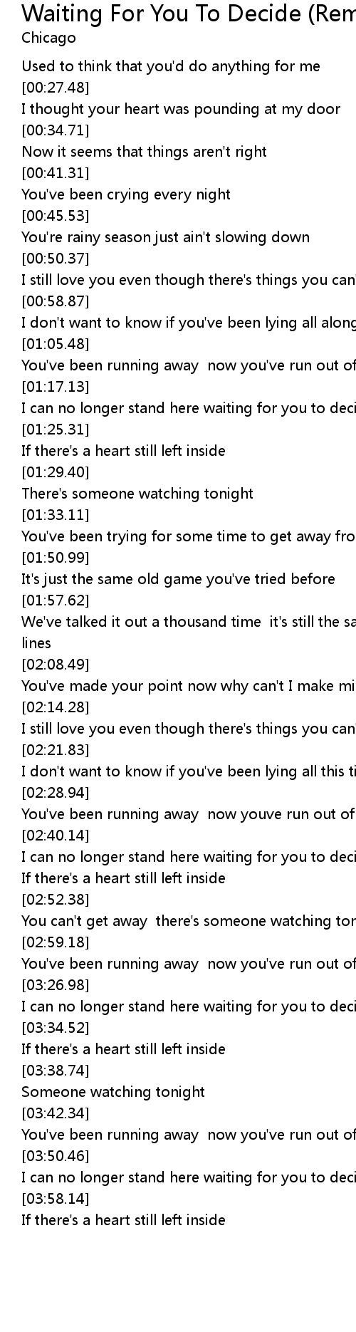 I can no longer stand here waiting for you to decide |