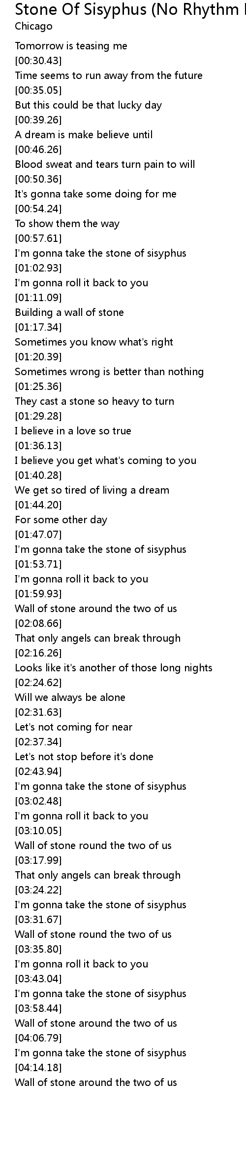 Stone Of Sisyphus (No Rhythm Loop) Lyrics