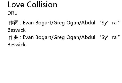 | [00:00.000] | zuò qǔ : Evan Bogart Greg Ogan Abdul " Sy' rai" Yilla Nathan Beswick |
