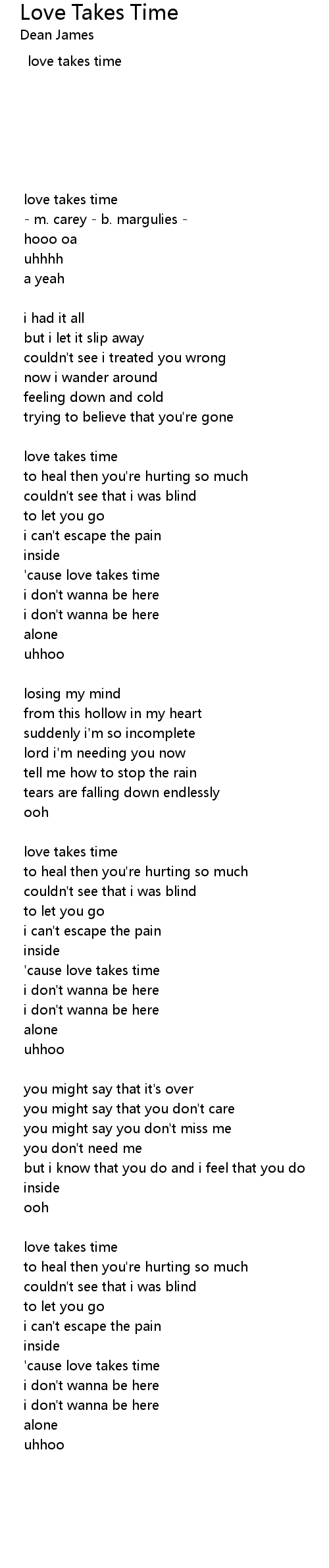 'cause love takes time |