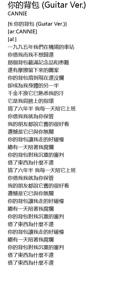 | ti: nǐ de bēi bāo Guitar Ver. | |