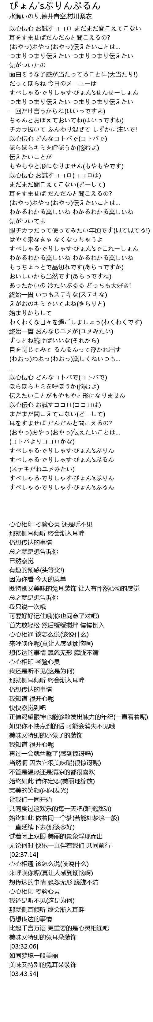 | [03:43.54] | すぺしゃる·でりしゃす·ぴょん'sぷるん |