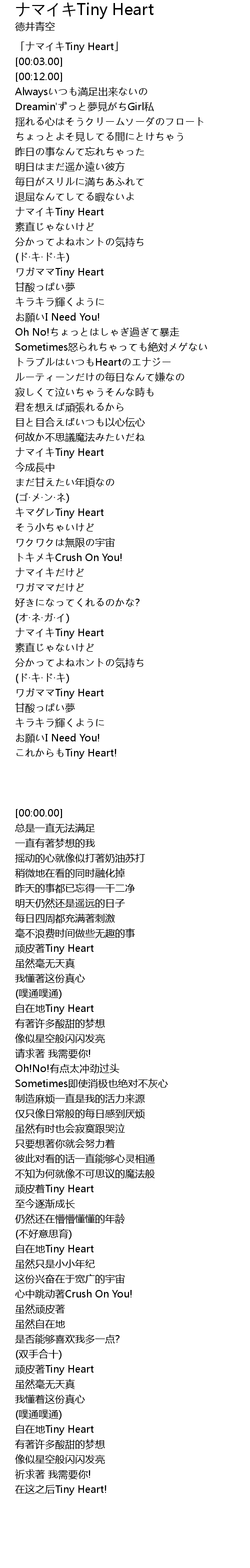 | [00:00.00] | 「ナマイキTiny Heart」 |