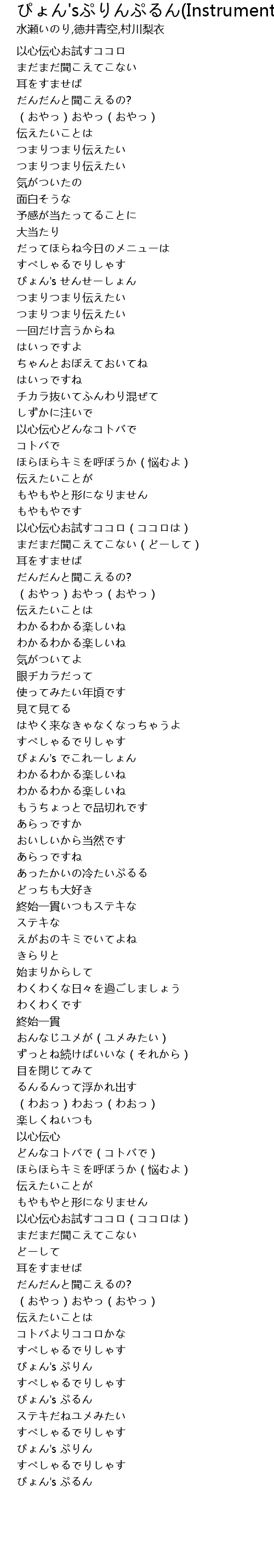 | [03:10.908] | 以心伝心お試すココロ(ココロは) |