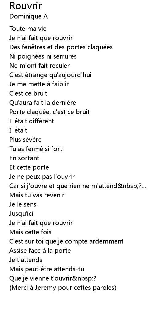| Car si j' ouvre et que rien ne m' attend nbsp?... | |