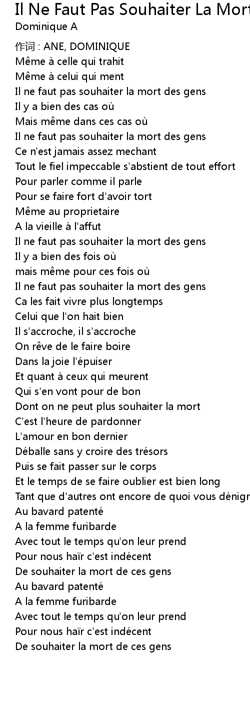 | Song | Il Ne Faut Pas Souhaiter La Mort Des Gens |
