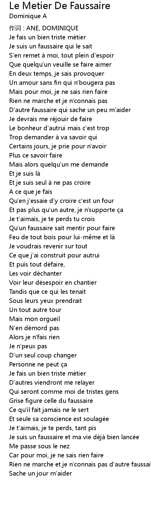 | Song | Le Metier De Faussaire |