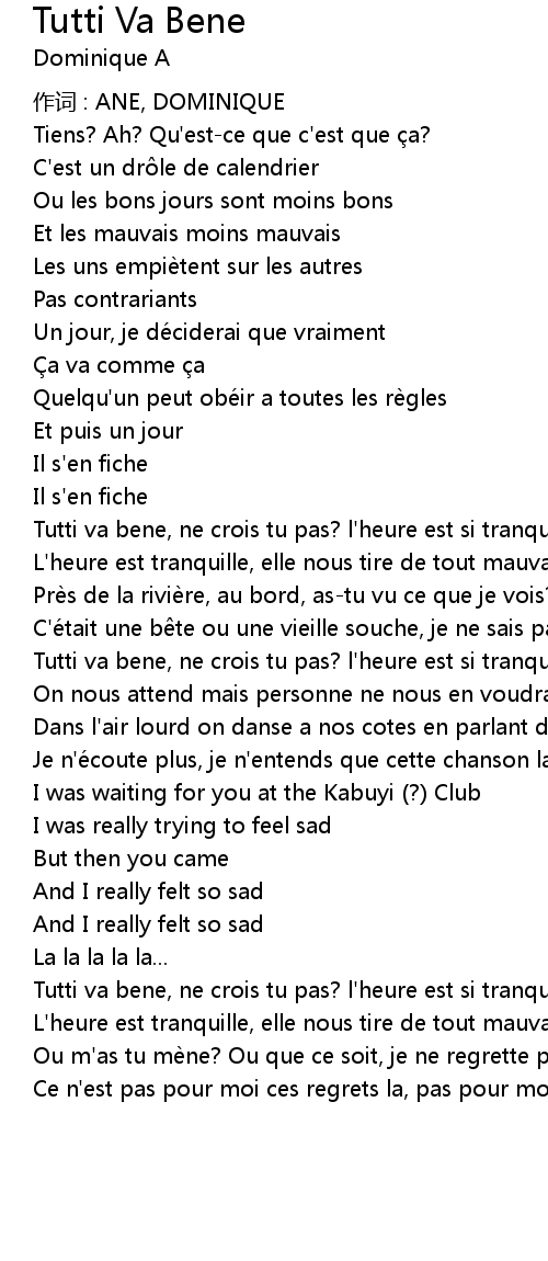 | Tutti va bene, ne crois tu pas? l' heure est si tranquille | |