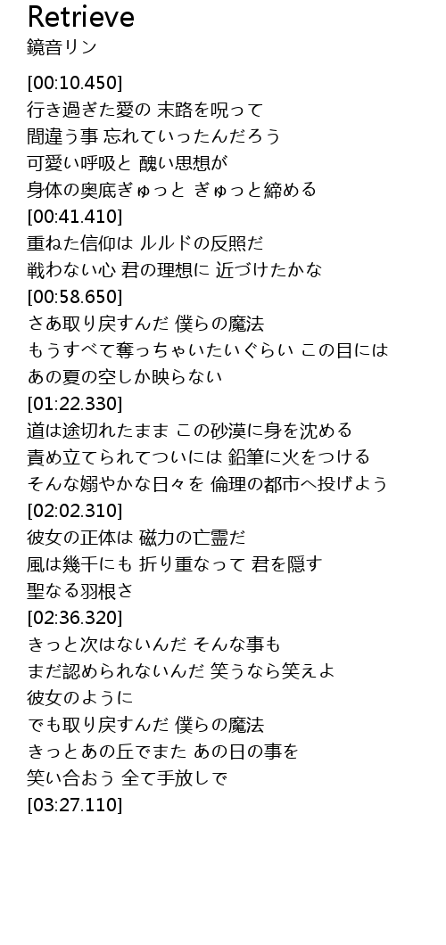 | [03:05.100] | でも取り戻すんだ 僕らの魔法 |