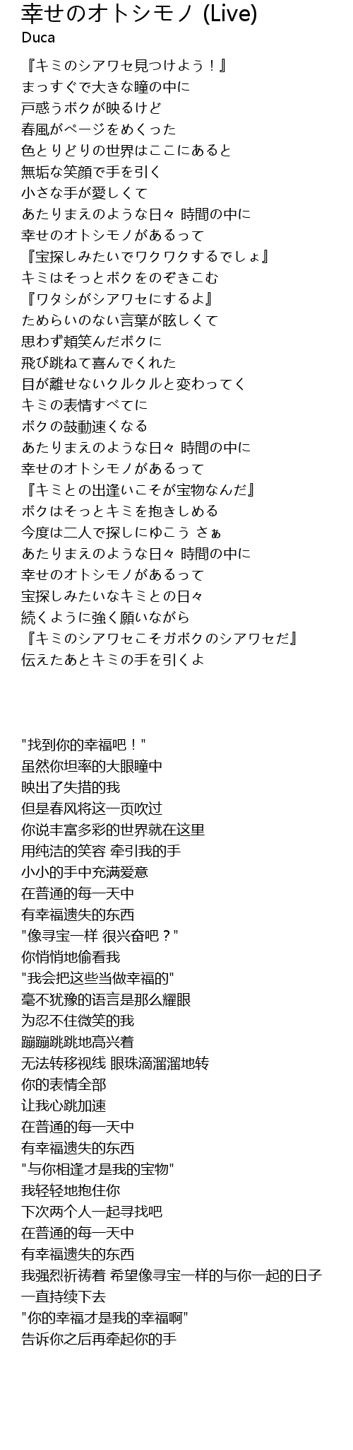 | [00:12.17] | 『キミのシアワセ見つけよう!』 |