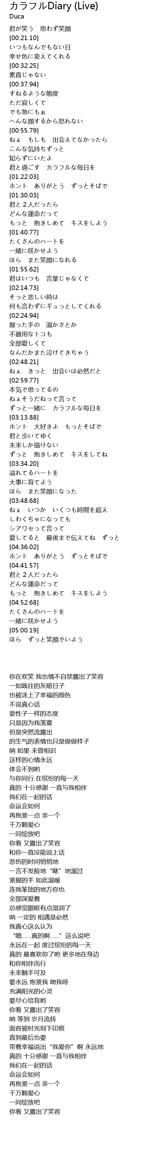 | [01:13.64] | 君と過ごす カラフルな毎日を |