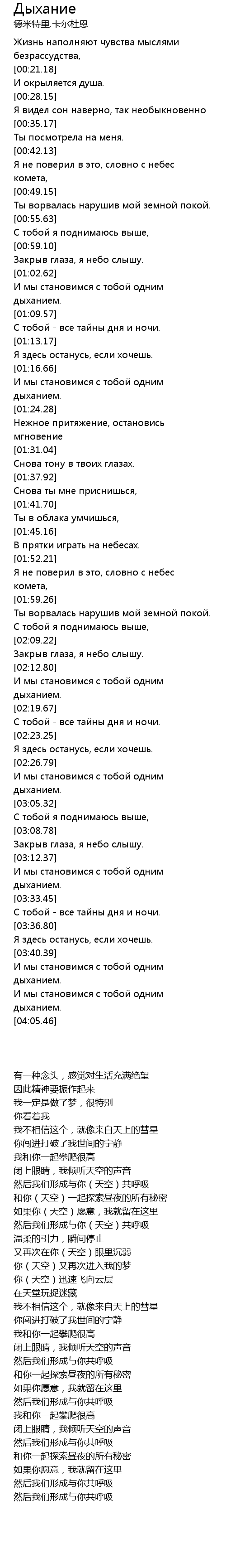 И мы становимся с тобой одним дыханием. |