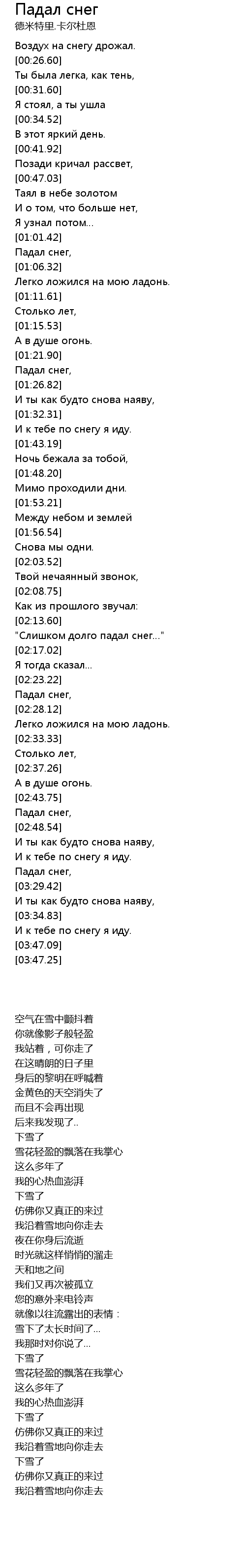 | [02:13.64] | "Слишком долго падал снег…" |