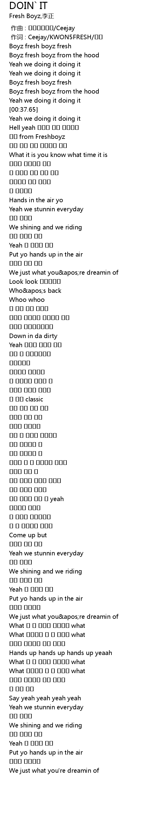 | [00:18.16] | Boyz fresh boyz fresh |