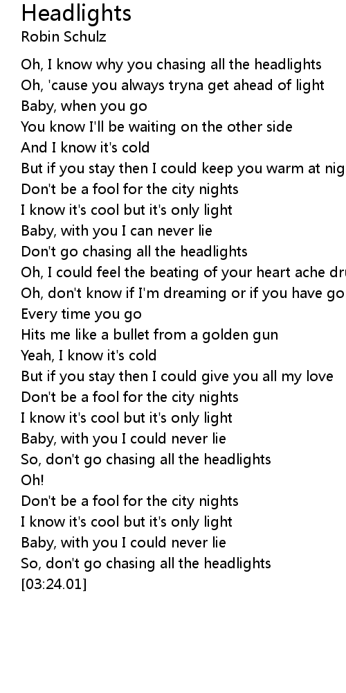 Oh, I know why you chasing all the headlights |