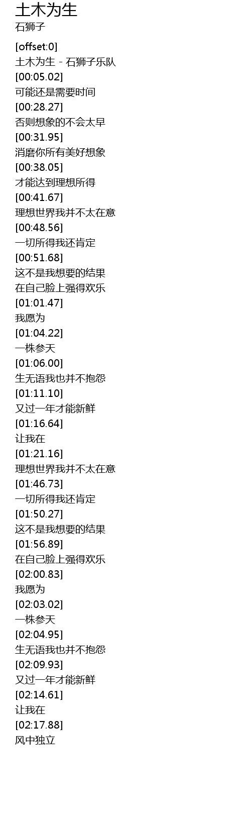 | [00:00.99] | 土木为生 - 石狮子乐队 |