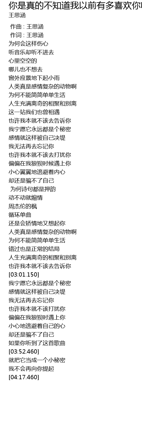 | Song | 你是真的不知道我以前有多喜欢你吗 |
