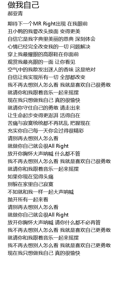 | xiàn zài wǒ zhǐ xiǎng zuò wǒ zì jǐ zhēn de hěn yú kuài |