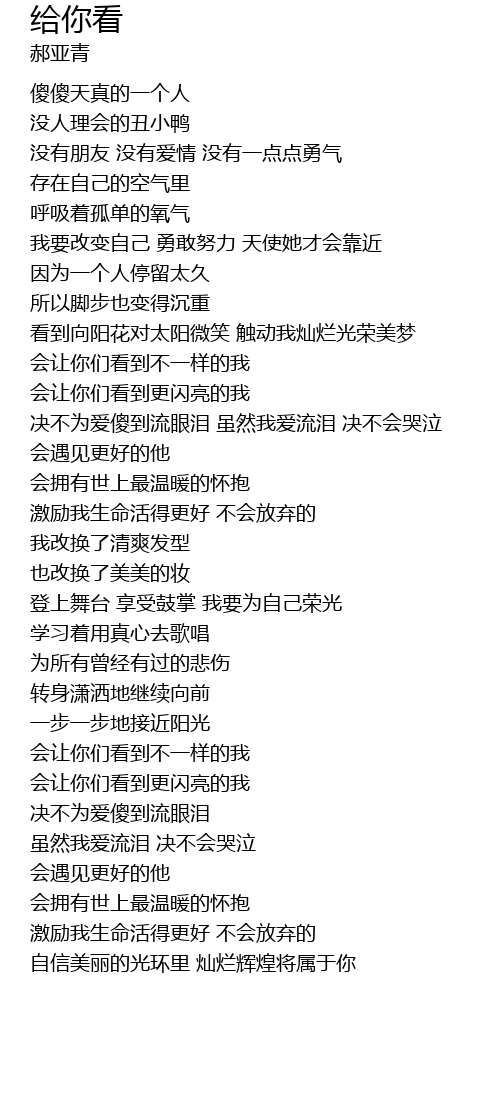 | [01:03.98] | 会让你们看到更闪亮的我 |