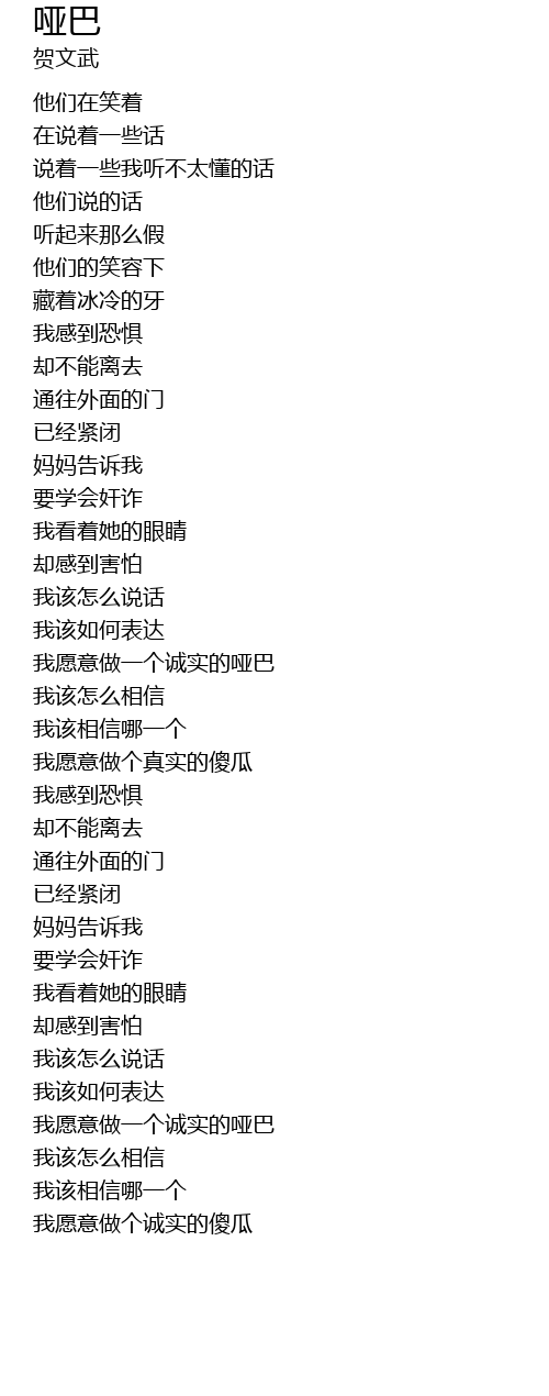 | [03:12.95] | 我愿意做一个诚实的哑巴 |
