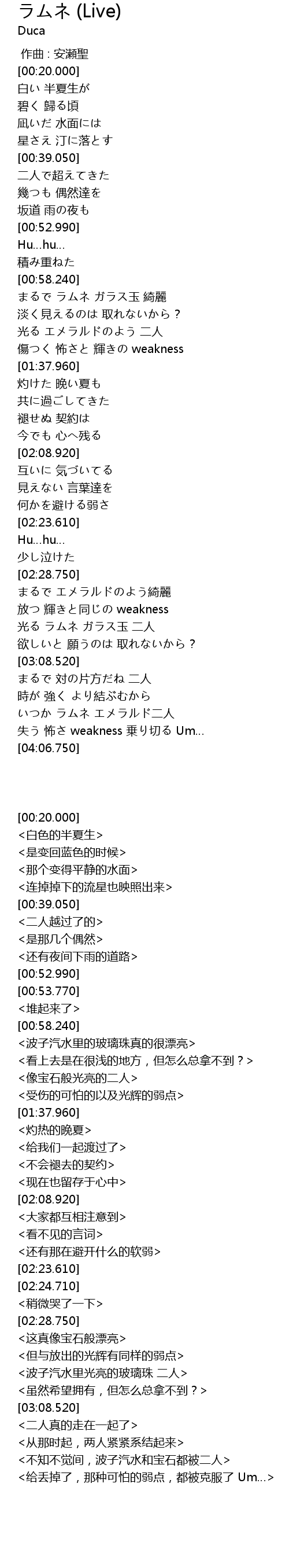 | [03:47.380] | いつか ラムネ エメラルド二人 |