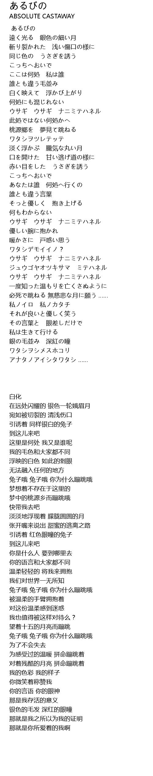 | [02:32.24] | 赤い目をした うさぎを誘う |