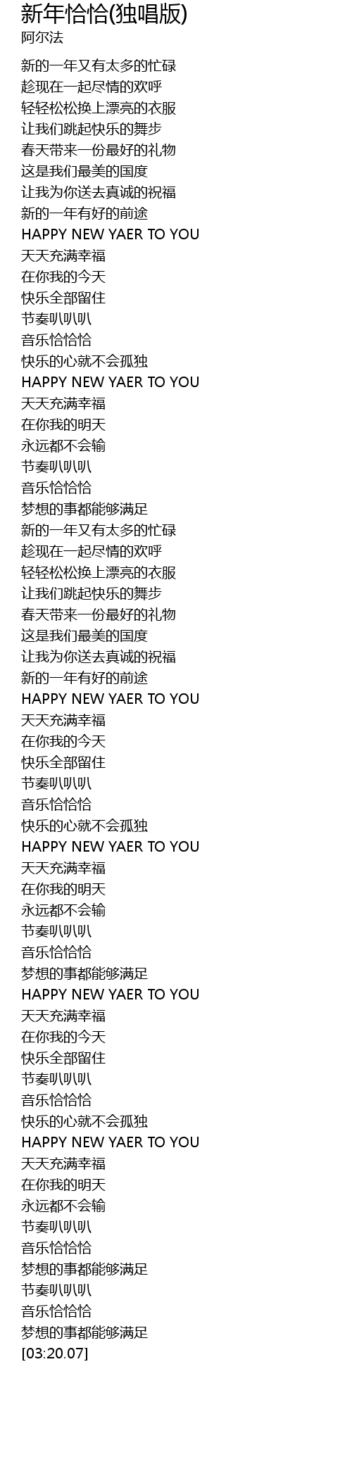 | [00:59.76] | HAPPY NEW YAER TO YOU |