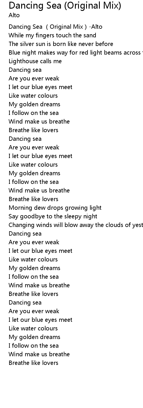 | [00:00.98] | Dancing Sea (Original Mix)-Alto |