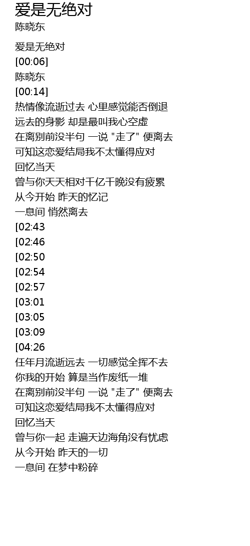 | [04:16][03:09][01:30] | 才完全明白爱是无绝对 |