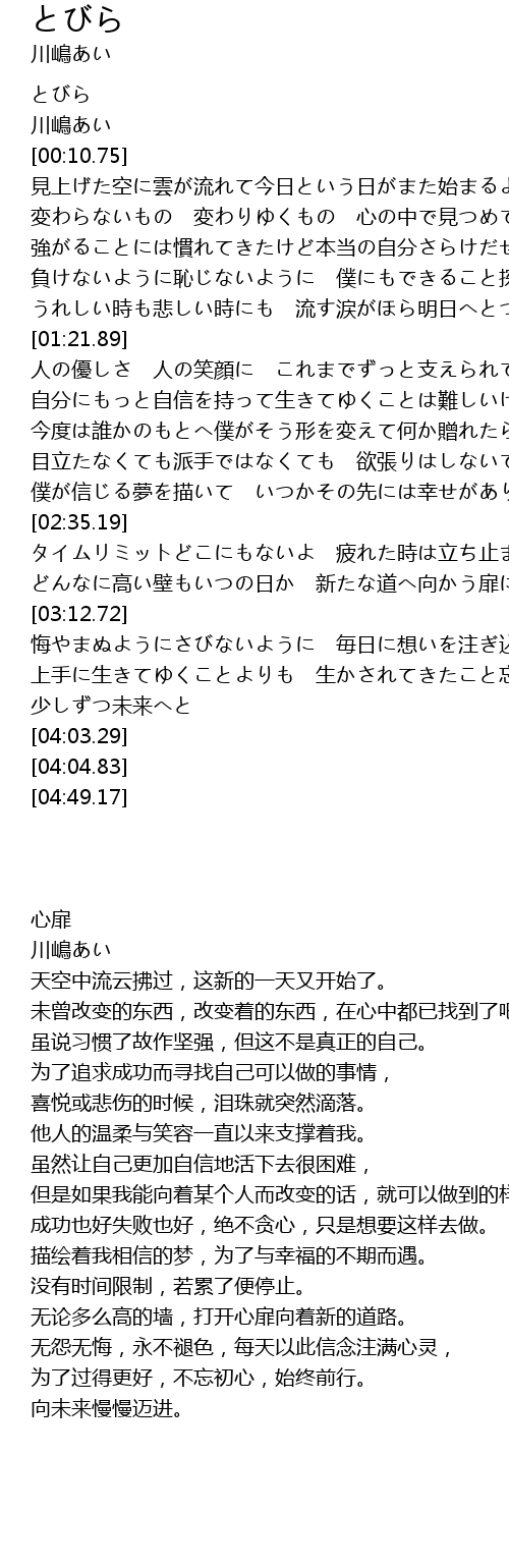 | [00:00.00] | とびら |