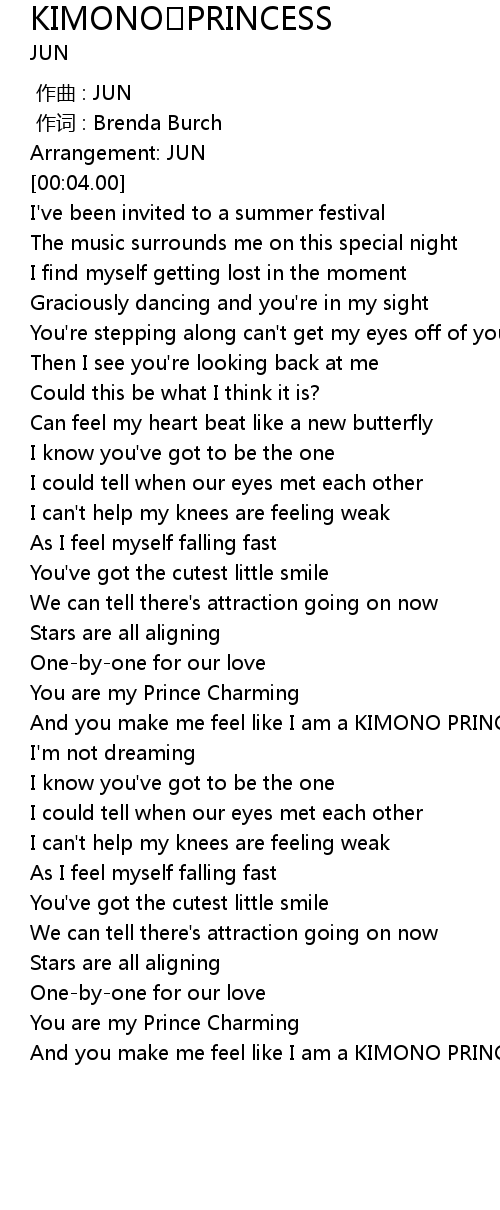 | [01:24.69] | And you make me feel like I am a KIMONO PRINCESS |