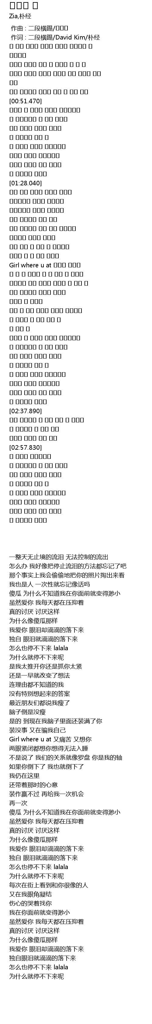 | [00:01.00] | 作词 : 二段横踢/David Kim/朴经 |
