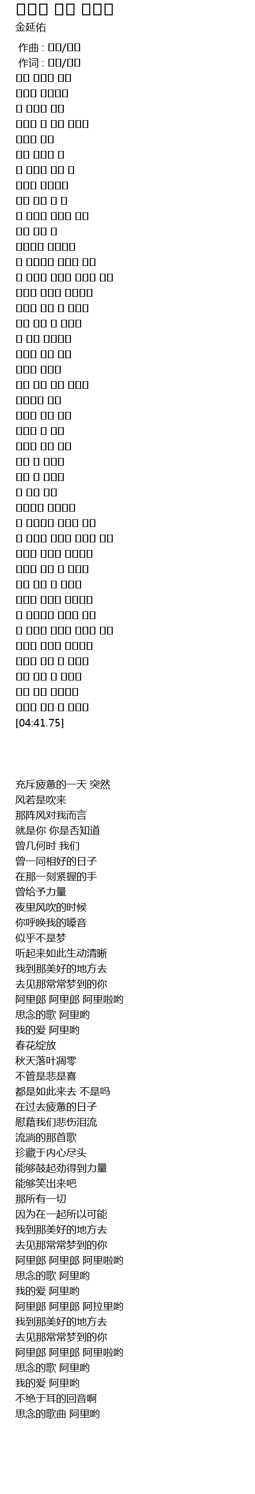 그리운 노래 내 아리요 |