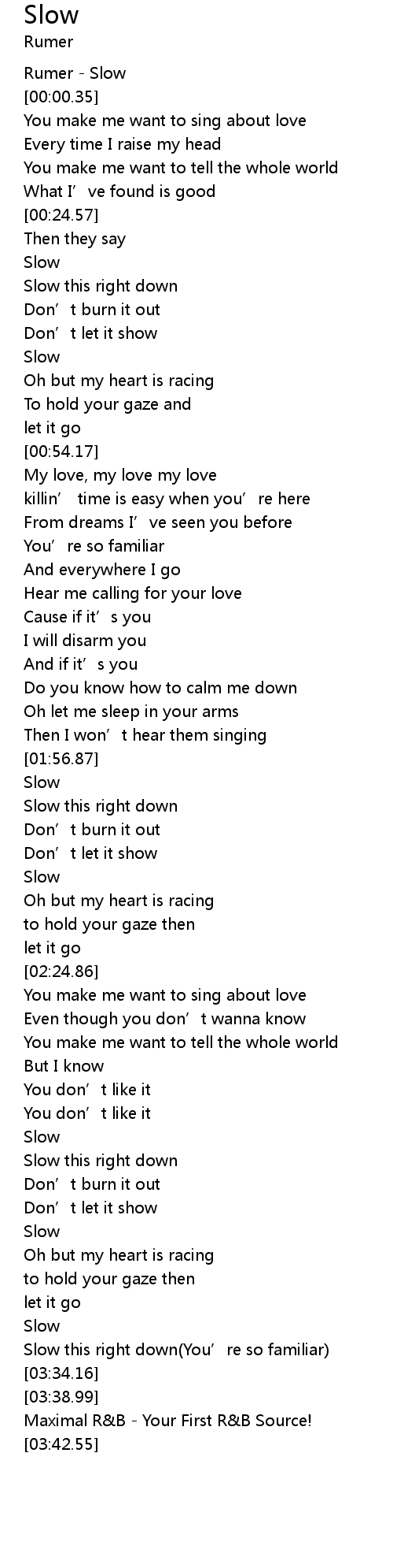 | [03:26.20] | Slow this right down(You’re so familiar) |