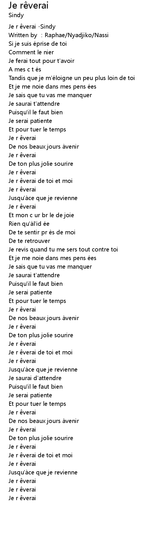 | [00:52.139] | Je r êverai |