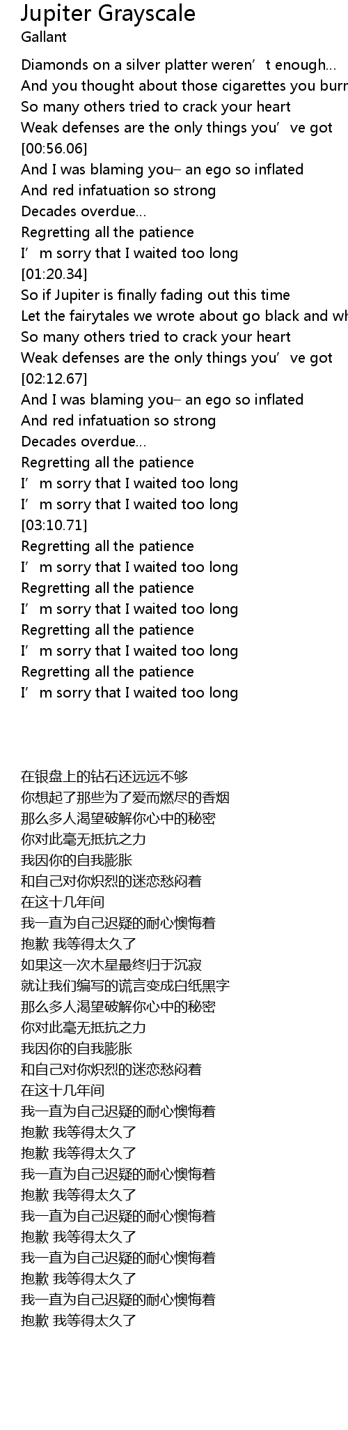 | [03:45.38] | Regretting all the patience |
