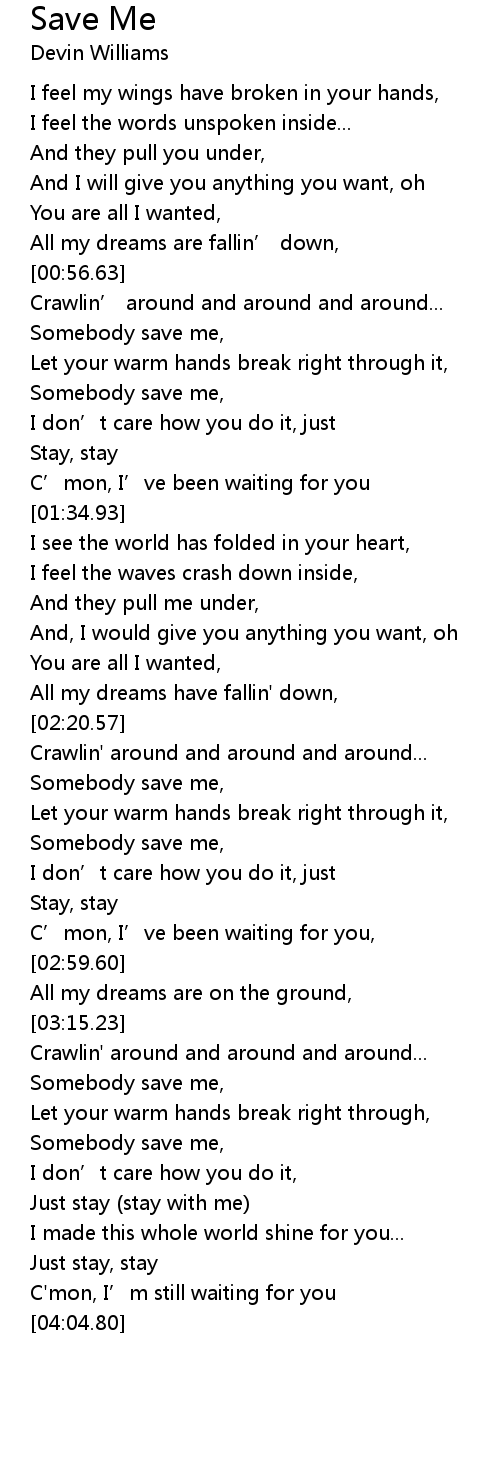 | [03:59.16] | C'mon, I’m still waiting for you |