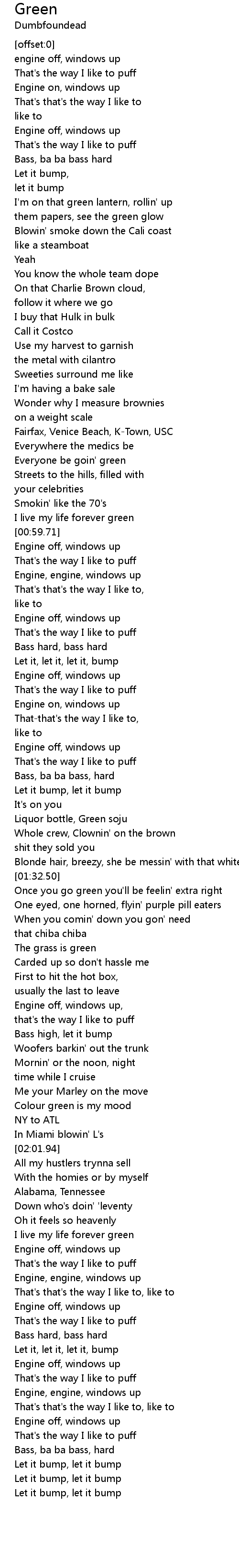 I'm on that green lantern, rollin' up |