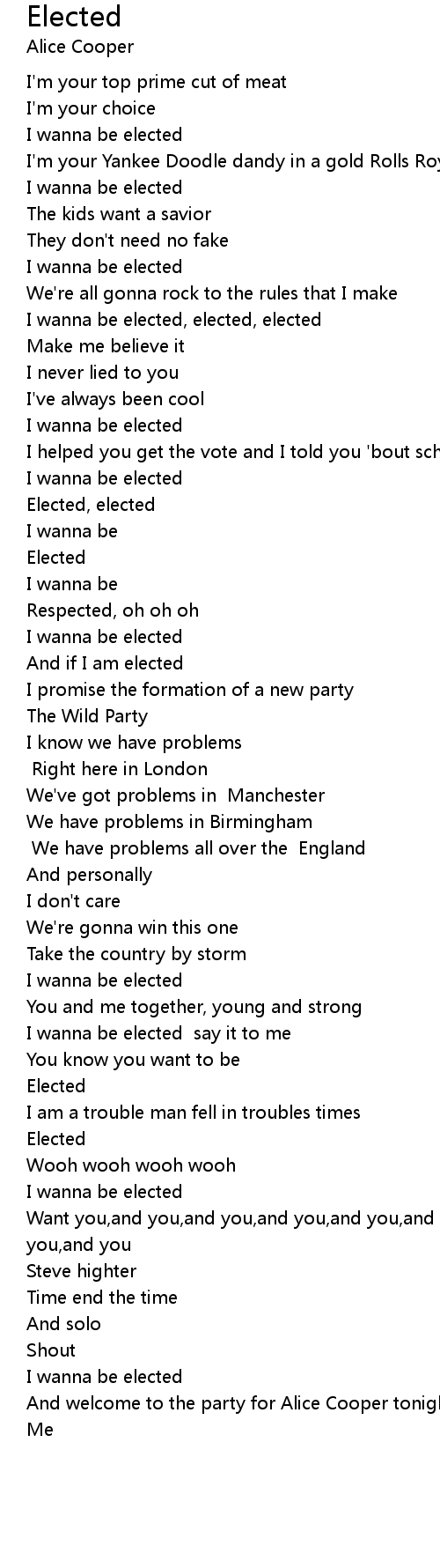 I wanna be elected, elected, elected |